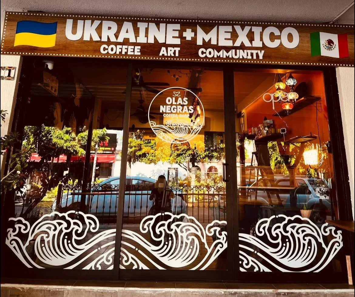 Ukraine and Mexican Coffee shop serving breakfast, baked goods, Lunch as well as live music events weekly and an Artisian market on Monday.